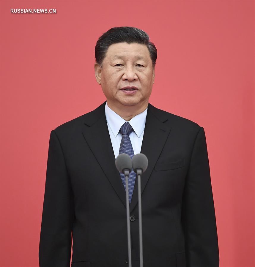 Член ПК Политбюро ЦК КПК, член Секретариата ЦК КПК Ван Хунин зачитал решение ЦК КПК о вручении флага.