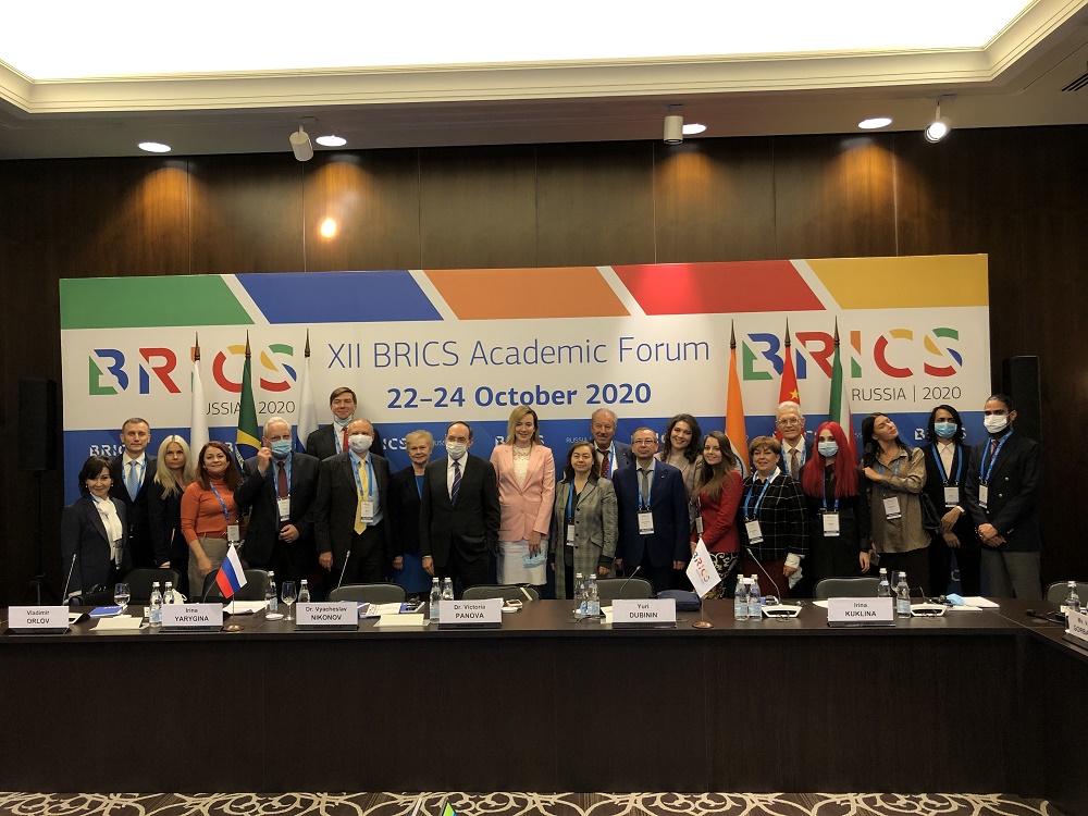 С 22 по 24 октября 2020 г. в Москве в рамках председательства Российской Федерации в объединении БРИКС прошел XII Академический форум БРИКС «Новое видение БРИКС для всеобщего благополучия». Организатором мероприятия выступил Национальный комитет по исследованию БРИКС. Основная цель Форума - расширение контактов между академическими и научными центрами, исследовательскими и высшими учебными заведениями пяти стран, а также укрепление диалога между правительством и научными кругами стран-участниц объединения БРИКС.