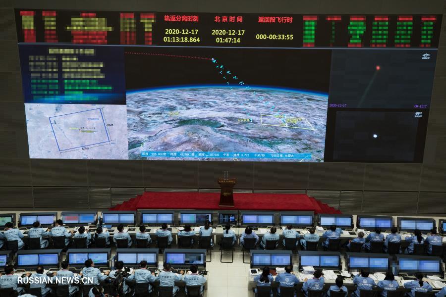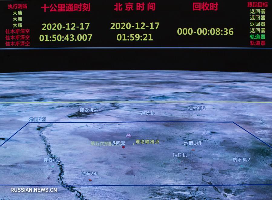 Пекин, 17 декабря /Синьхуа/ -- 17 декабря в 01:59 по пекинскому времени возвращаемый модуль китайского лунного зонда "Чанъэ-5" с образцами лунного грунта на борту произвел безопасное приземление в намеченном районе хошуна Сыцзыван автономного района Внутренняя Монголия /Северный Китай/. Миссия "Чанъэ-5" успешно завершена.