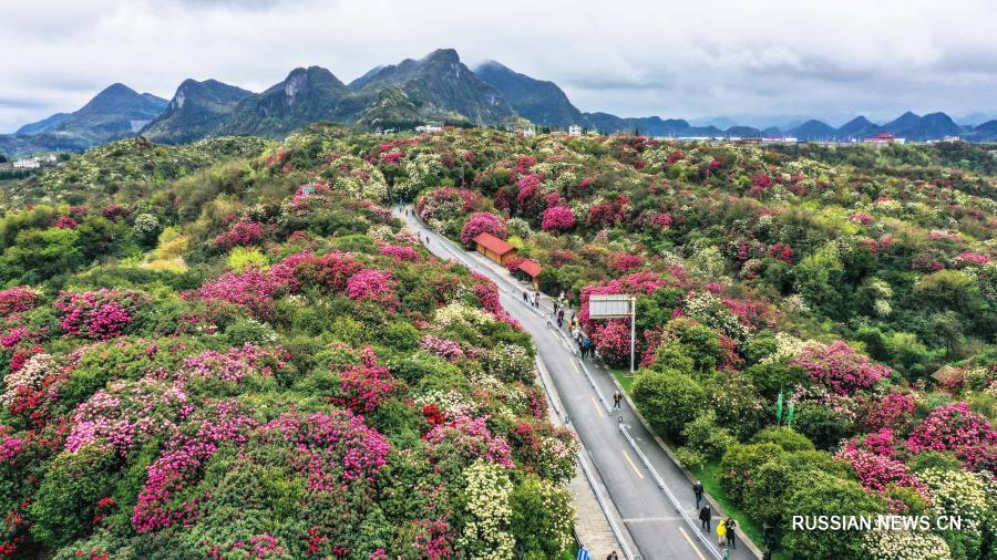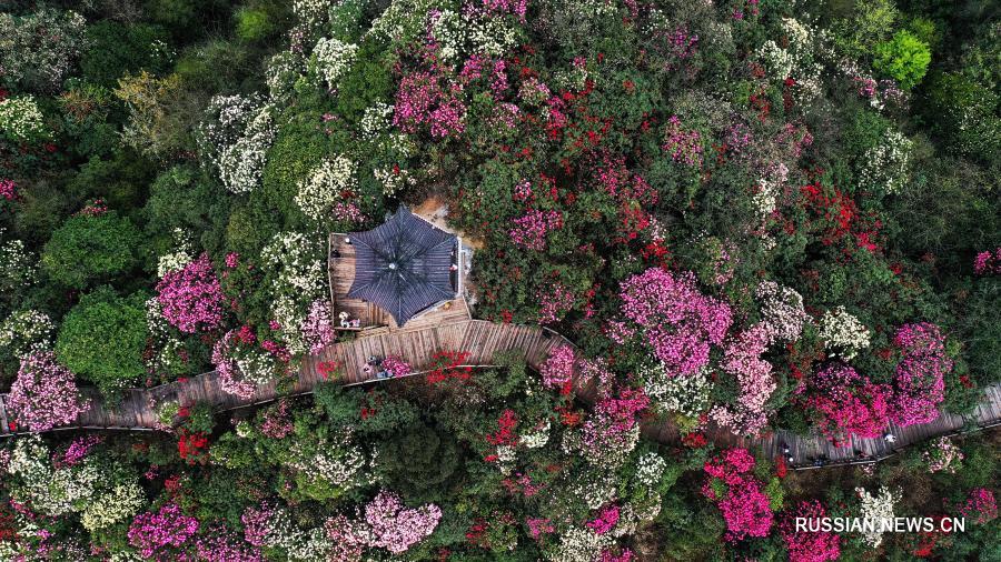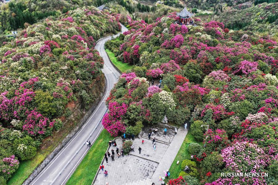 На днях в ландшафтном районе "Байли-дуцзюань", расположенном в округе Бицзе /провинция Гуйчжоу, Юго-Западный Китай/, на площади около 120 кв. км пышно цветут дикие азалии, привлекая внимание множества туристов.