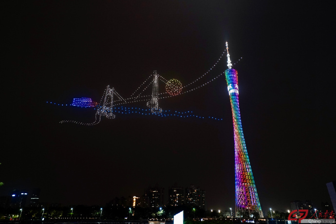 Вечером 19 апреля в китайском городе Гуанчжоу пров. Гуандун 1000 дронов поднялись в небо и устроили настоящее световое шоу. Беспилотники собирались в разные узоры и иероглифы, описывающие регион «Большого залива» (провинция Гуандун – Гонконг – Макао), при этом создавая удивительные картины. В конце концов, они выстроились в небе в виде надписи: «Большой залив, блестящее будущее». (Дуань Вэй, Вань Цюань)