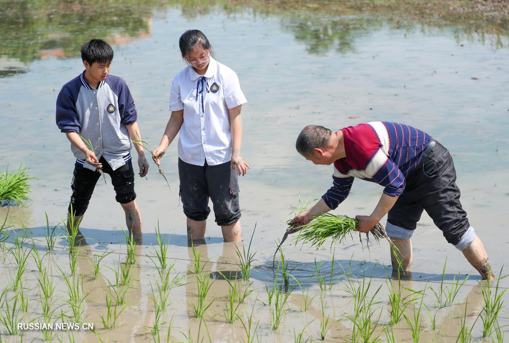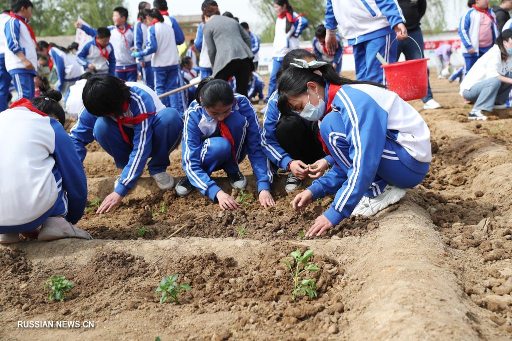 В преддверии Дня международной солидарности трудящихся, который отмечается 1 мая, учащиеся начальных и средних школ в разных регионах Китая принимают участие в мероприятиях по трудовому воспитанию. Они занимаются земледельческими работами и осваивают сельскохозяйственные знания прямо на полях.