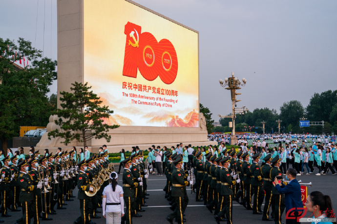 Площадь Тяньаньмэнь в Пекине перед началом торжественного собрания по случаю 100-летия КПК