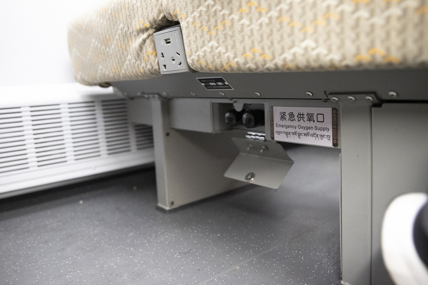 Под сиденьем пассажира, помимо зарядной вилки, установлен еще порт аварийной подачи кислорода.