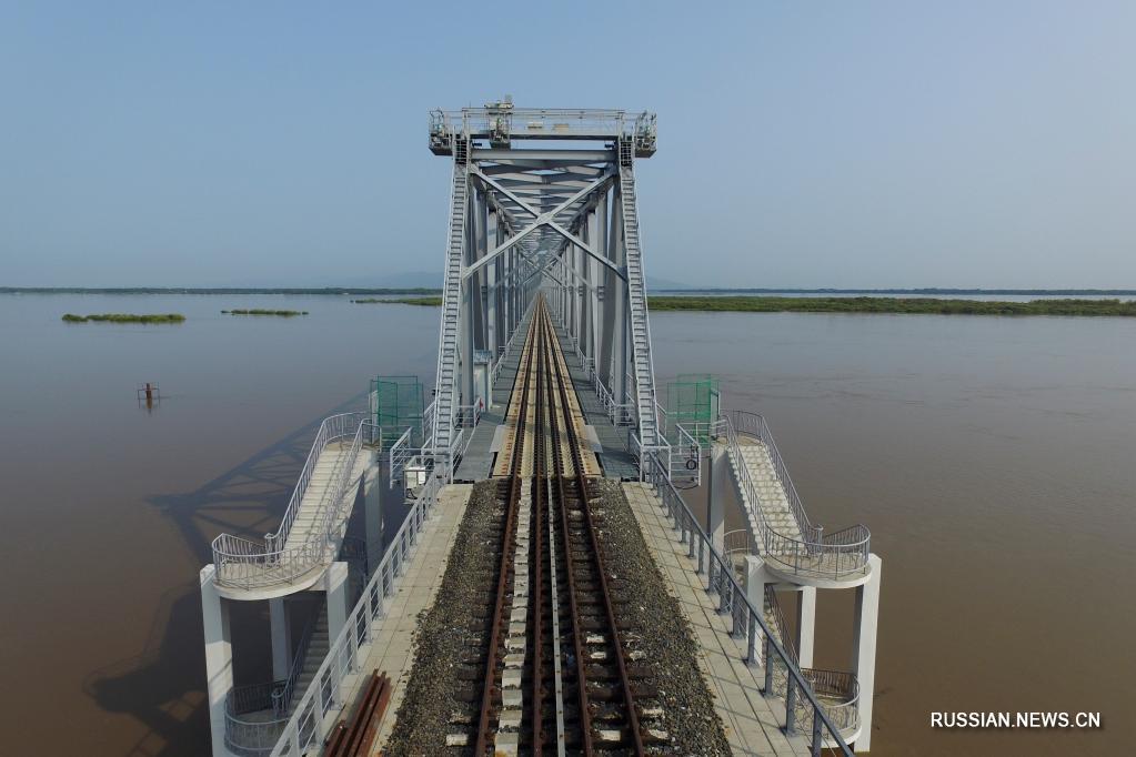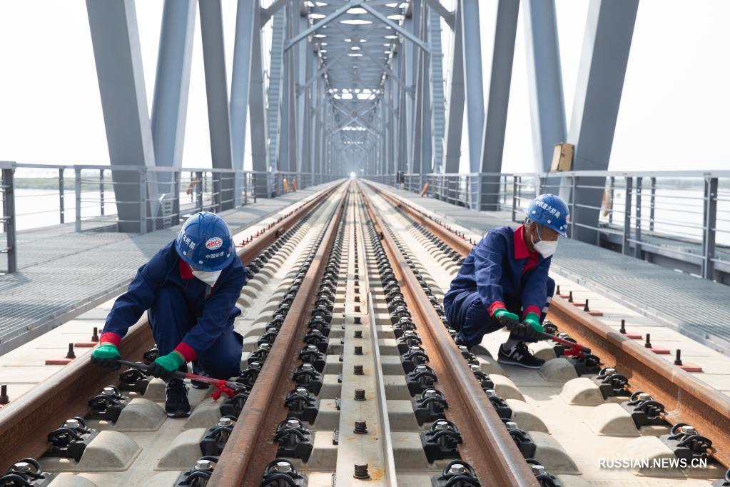 Работы по укладке рельсов на железнодорожном мосту между городским уездом Тунцзян /провинция Хэйлунцзян, Северо-Восточный Китай/ и российским селом Нижнеленинское были завершены сегодня утром.