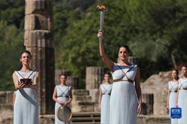 Во время традиционной церемонии актриса Ксанти Георгиу в роли древнегреческой верховной жрицы при помощи параболического зеркала зажгла огонь в факеле от солнечных лучей перед 2500-летним храмом Геры, богини древнегреческой мифологии.