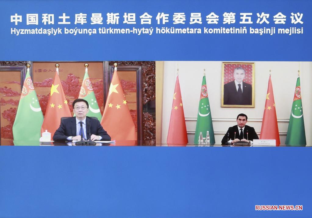 Член Постоянного комитета Политбюро ЦК КПК, вице-премьер Госсовета КНР, председатель Китайско-туркменского комитета по сотрудничеству с китайской стороны Хань Чжэн сегодня по видеосвязи из Пекина провел вместе с вице-премьером Туркменистана Сердаром Бердымухамедовым 5-е заседание Китайско-туркменского комитета по сотрудничеству.