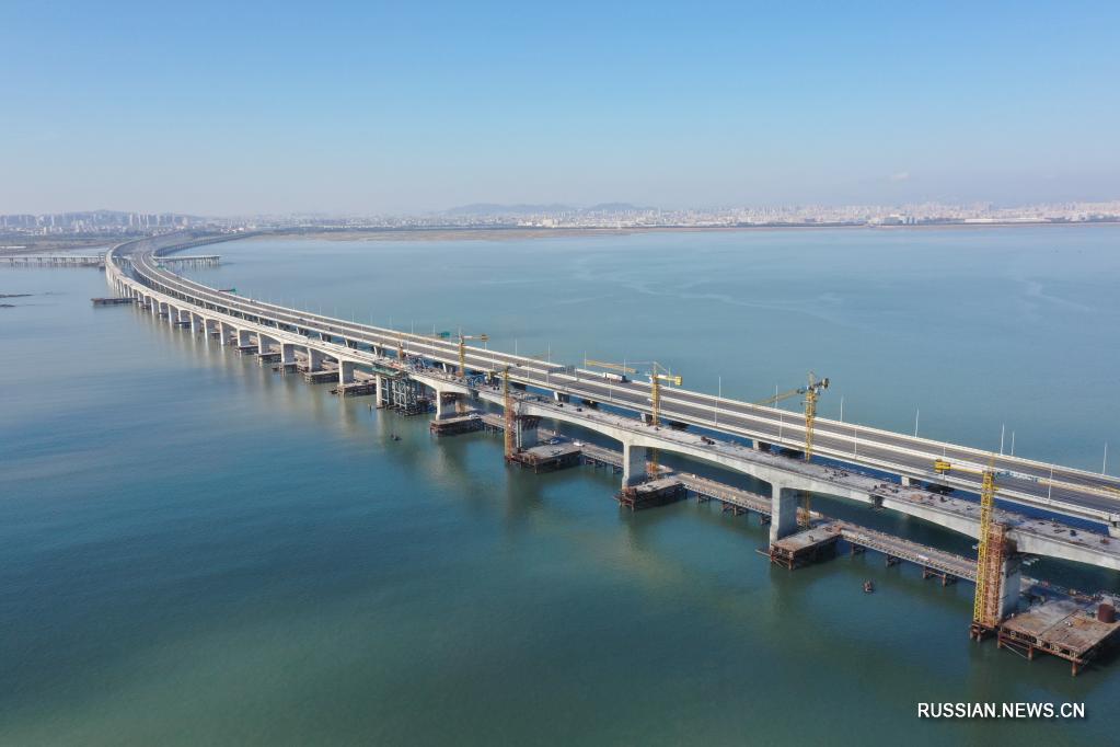 Во вторник было завершено строительство первого в Китае морского моста высокоскоростной железной дороги /ВСЖД/. Мост проходит через залив Цюаньчжоу. Его общая длина составляет 20,287 км. Данная ВСЖД связывает города Фучжоу и Сямэнь в провинции Фуцзянь на востоке Китая.
