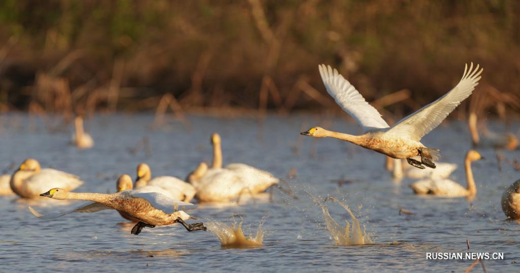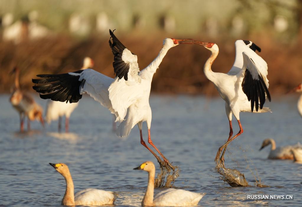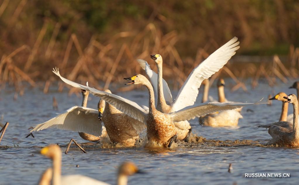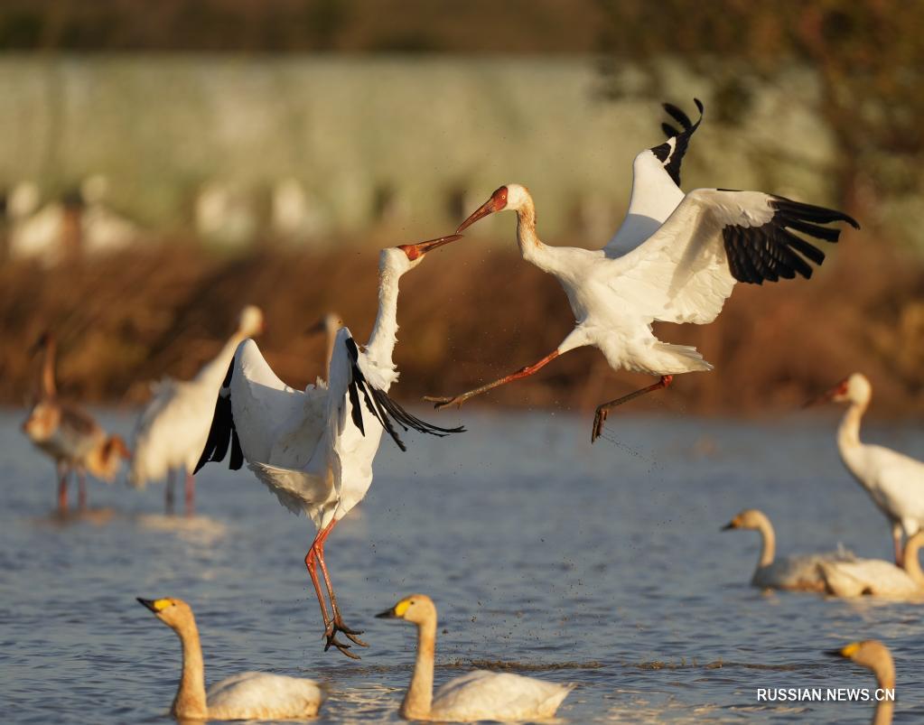 C приходом зимы множество перелетных птиц прилетели на зимовку в район озера Поянху в пров. Цзянси /Восточный Китай/.