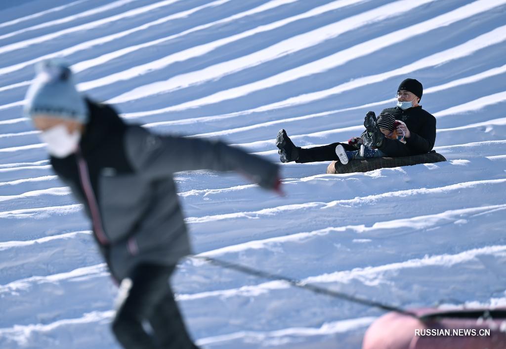 Снежные скульптуры на тему зимних Олимпийских игр представлены в Харбине