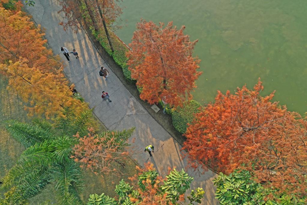 Туристы отдыхают в парке Цзиньхуача города Наньнин