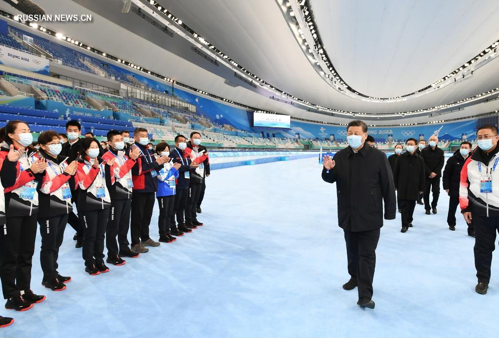 Си Цзиньпин посетил Национальный конькобежный стадион, главный пресс-центр, Олимпийскую деревню, Центр оперативного командования на время Олимпийских игр и тренировочную базу для зимних видов спорта, где ему рассказали о ходе подготовки к Олимпийским играм и о том, как к ним готовятся китайские спортсмены.