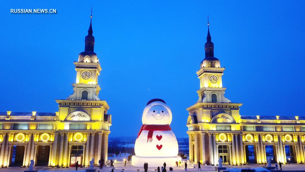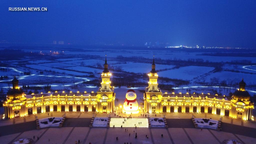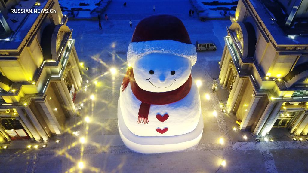 В Харбине на берегу реки Сунхуацзян создали 18-метрового снеговика