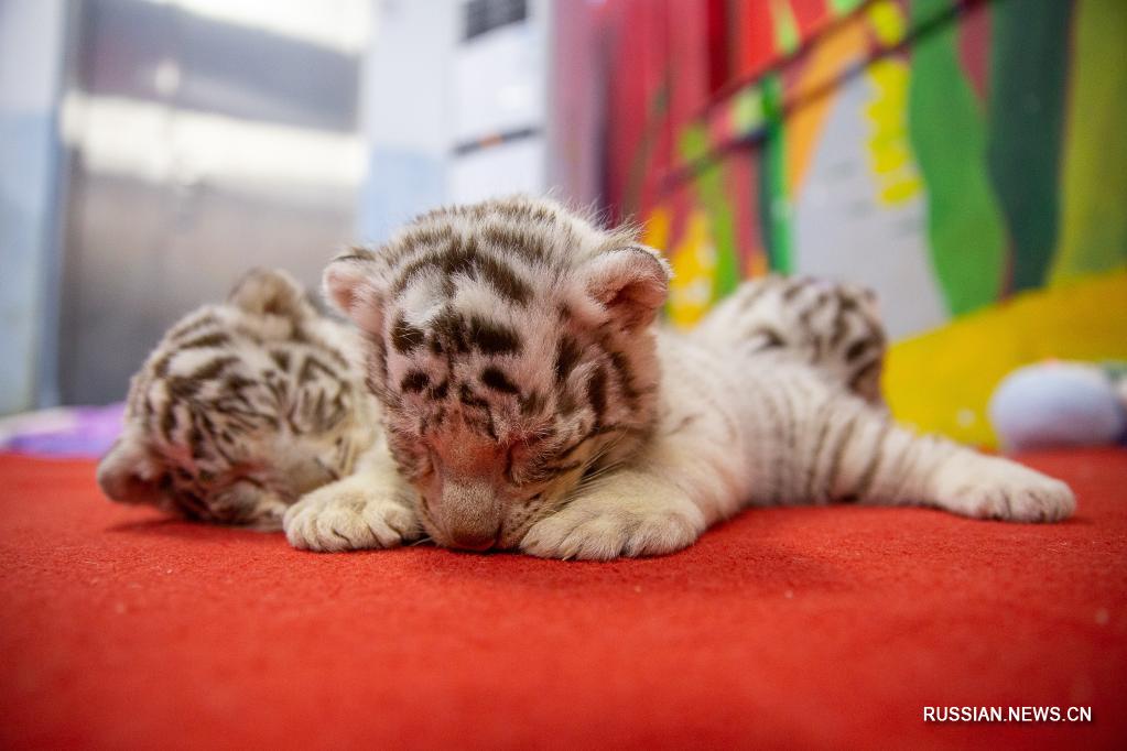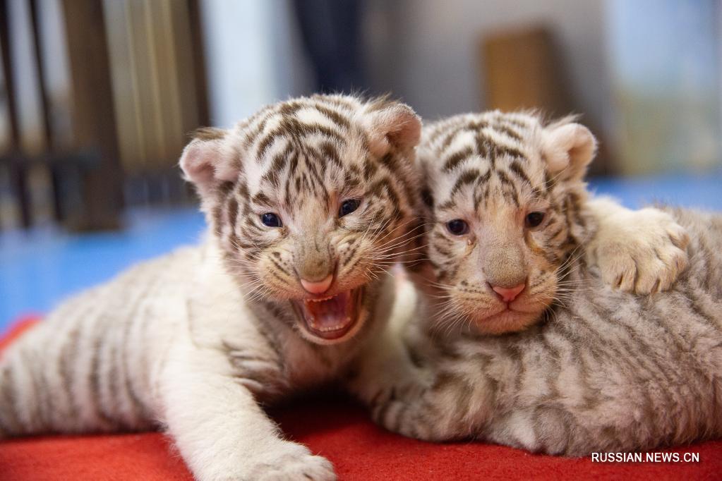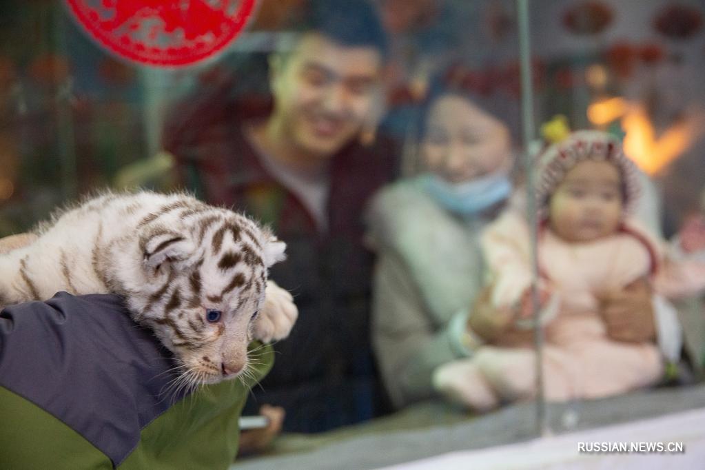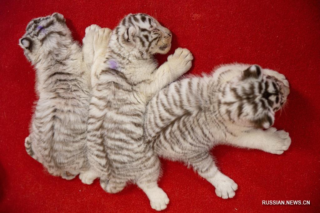 Три белых тигренка поздравили посетителей зоопарка в провинции Чжэцзян с наступающим годом Тигра