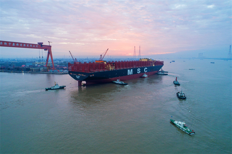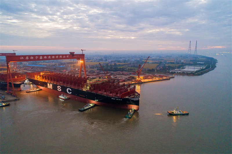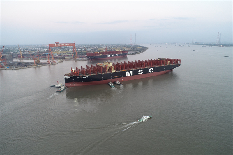 Крупнейшие в мире контейнеровозы выведены из дока в китайской провинции Цзянсу