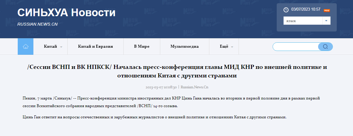 Цинь Ган ответит на вопросы отечественных и зарубежных журналистов о внешней политике и отношениях Китая с другими странами.