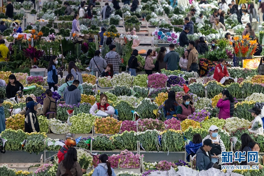 В преддверии Международного женского дня оживленный цветочный рынок "Доунань" в городе Куньмин /провинция Юньнань, Юго-западный Китай/ охватил ажиотажный спрос на цветы благодаря бурно развивающейся "экономике женщин".