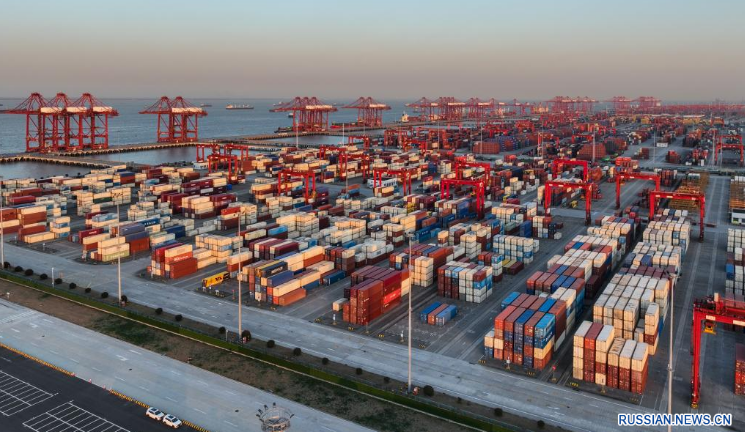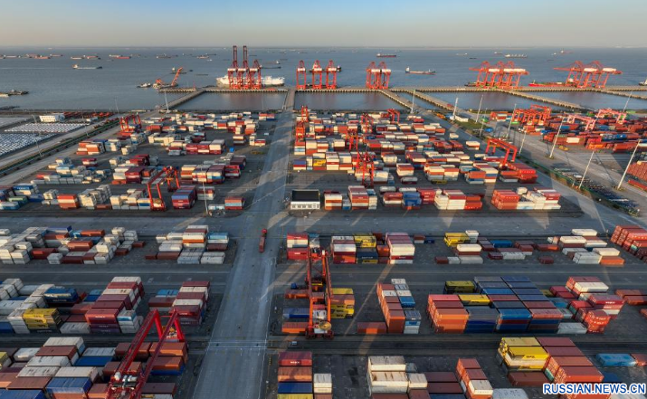 Транспортировка контейнеров в порту Тайцан провинции Цзянсу осуществляется бесперебойно