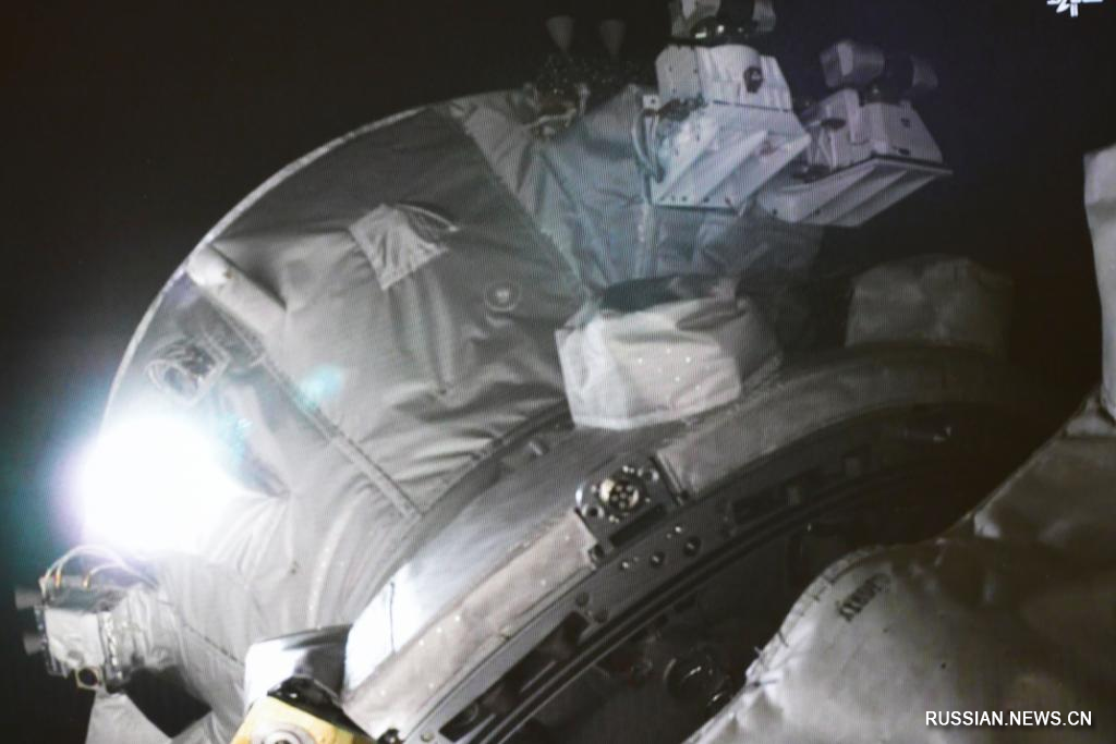 Члены экипажа пилотируемого космического корабля "Шэньчжоу-15", находящиеся на борту космической станции, войдут в корабль и, согласно плану, проведут перемещение грузов и другие соответствующие работы. /Фото: Синьхуа/