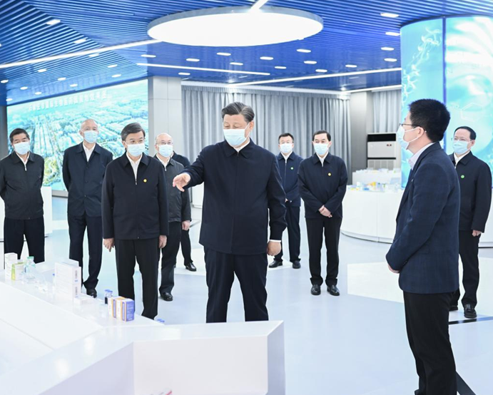 Позже китайский лидер осмотрел выставочный зал планирования индустриального парка биомедицины, где он подчеркнул важность укрепления потенциала в области проведения фундаментальных исследований и научных инноваций для того, чтобы жизненные артерии биомедицинской промышленности оставались в руках Китая.