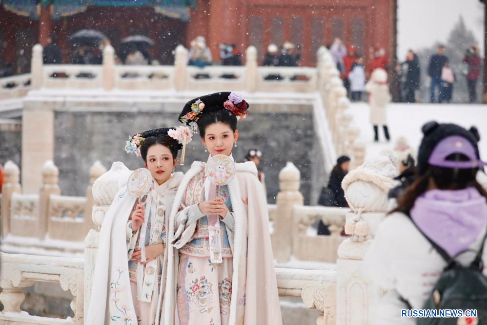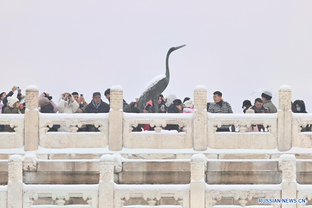 В среду в Пекине в очередной раз выпал снег, запечатлеть который на фоне музея Гугун, известного также как Запретный город, пришло множество туристов.