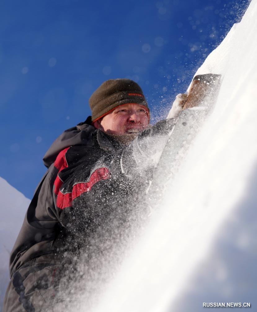 Участники Харбинского международного конкурса ледяных скульптур приступили к работе