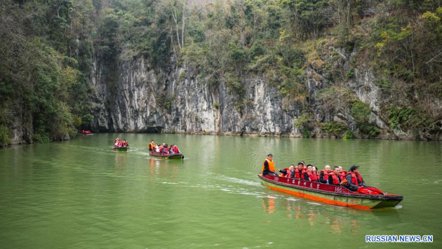 Известная своими подземными пещерами живописная зона Лунгун, расположенная в южном пригороде города Аньшунь провинции Гуйчжоу на юго-западе Китая, привлекает многочисленных туристов. (Фото Синьхуа)