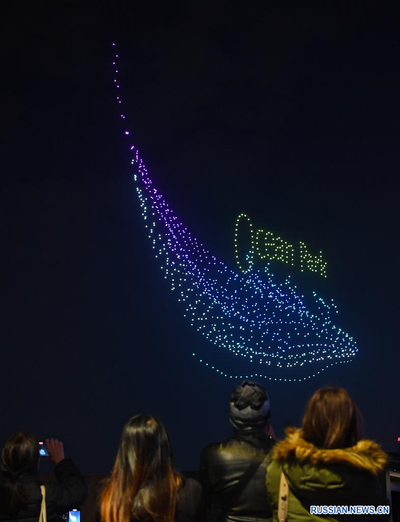 В воскресенье в Сянгане состоялось световое шоу с помощью беспилотников.