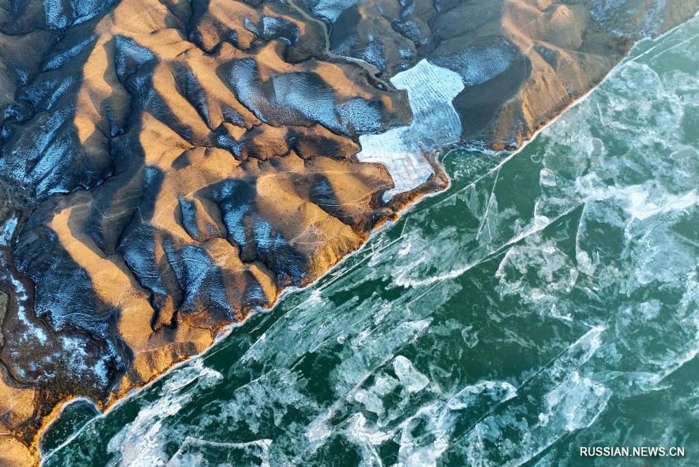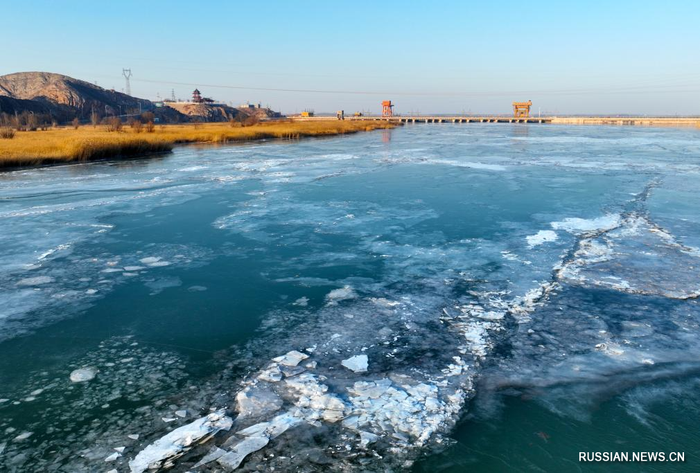Скованный льдом участок реки Хуанхэ на территории Нинся-Хуэйского АР