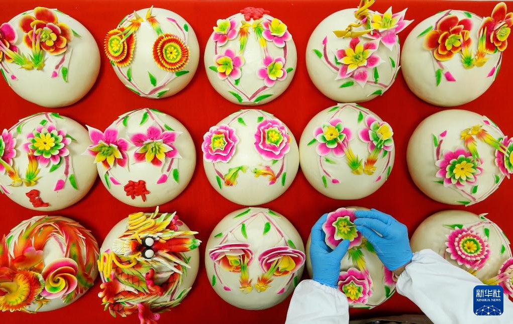 Народные мастера в городе Циндао /пров. Шаньдун, Восточный Китай/ на днях заняты изготовлением цветочных булочек "Хуамо" с целью обеспечения поставок их продукции на праздничный рынок по случаю приближения праздника Весны /Чуньцзе, традиционный китайский Новый год по лунному календарю/. (Синьхуа фото)