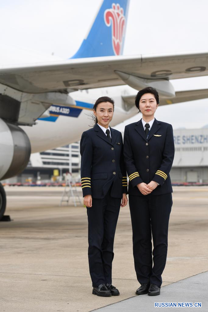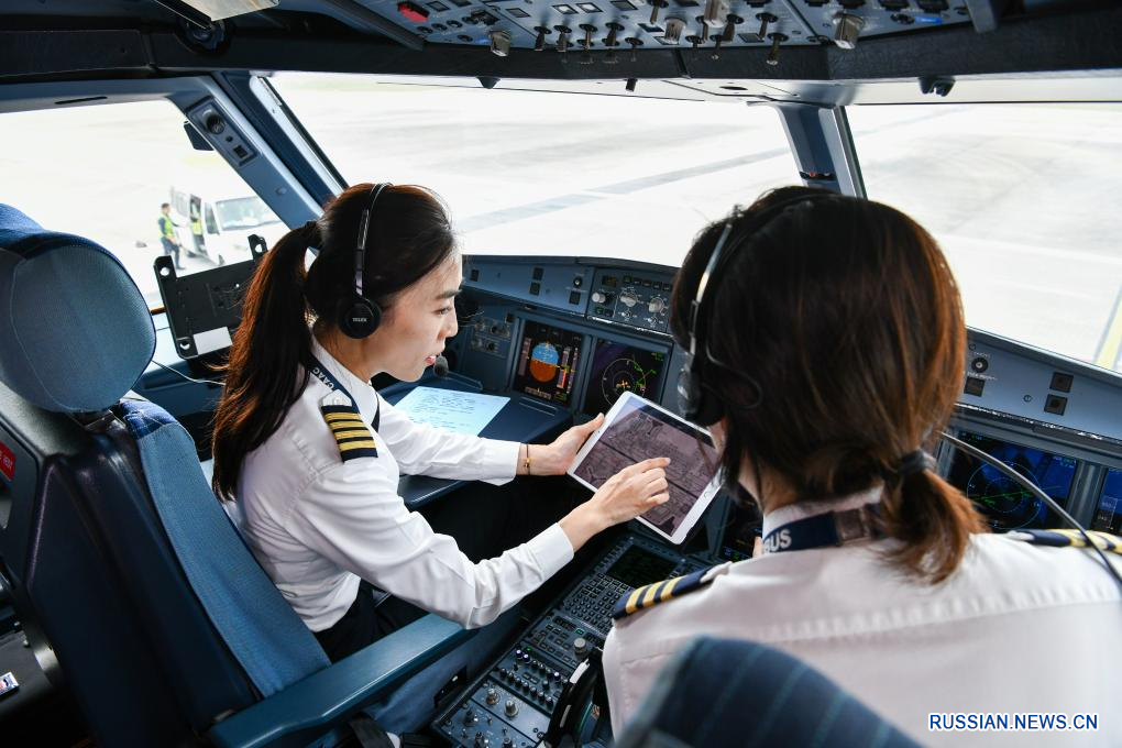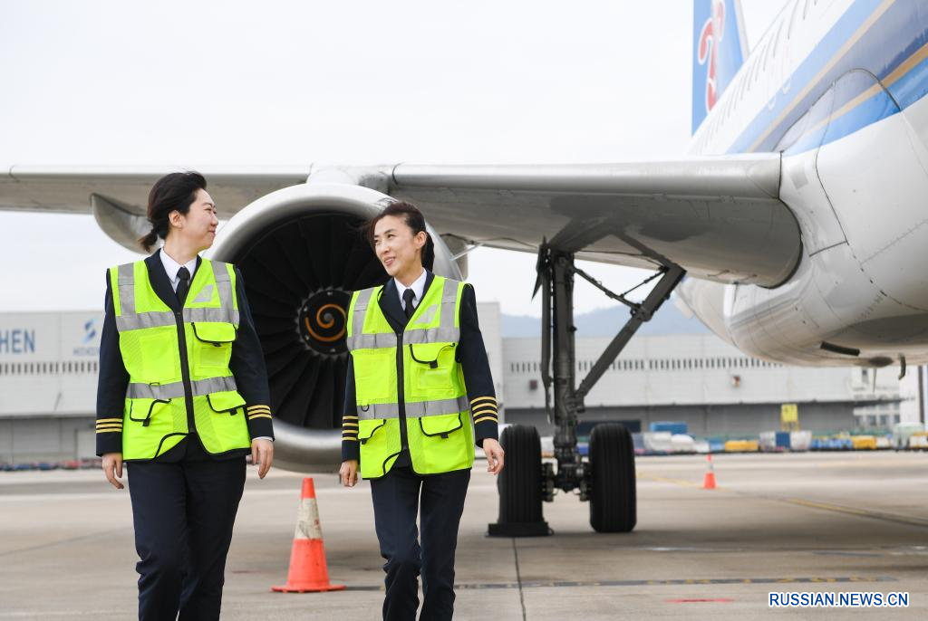 На снимке запечатлены две женщины-пилоты авиакомпании China Southern Airlines: командир воздушного судна Сюй Яньсю и второй пилот Лю Ихань. Летчицы в гражданской авиации Китая впервые появились в 2003 году, а в вышеуказанной авиакомпании их число выросло с первоначальных 5 до нынешних 34 человек. /Фото: Синьхуа/