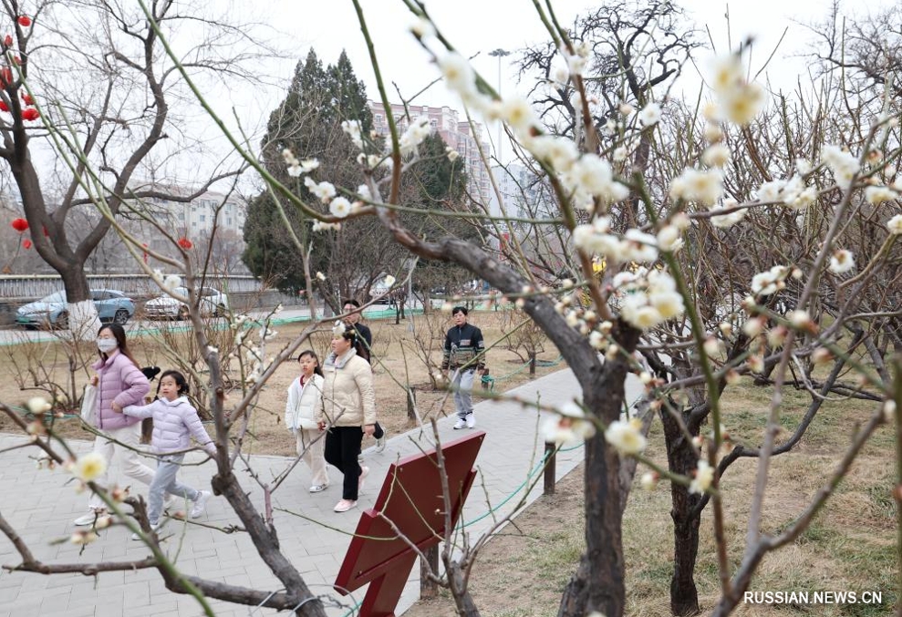 По мере повышения температуры воздуха на днях в Пекине зацвел абрикос муме. (Фото Синьхуа)