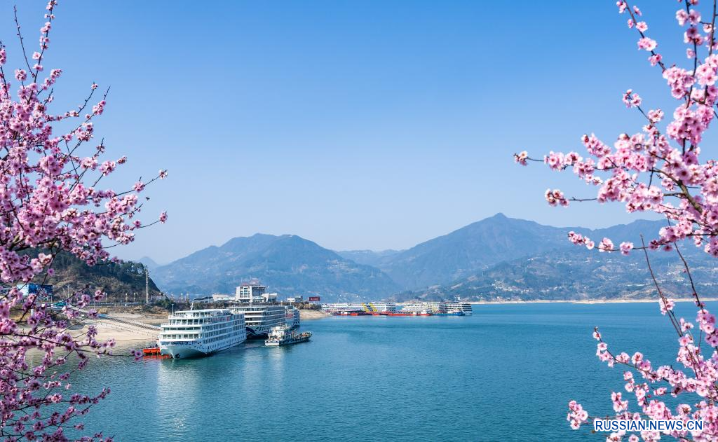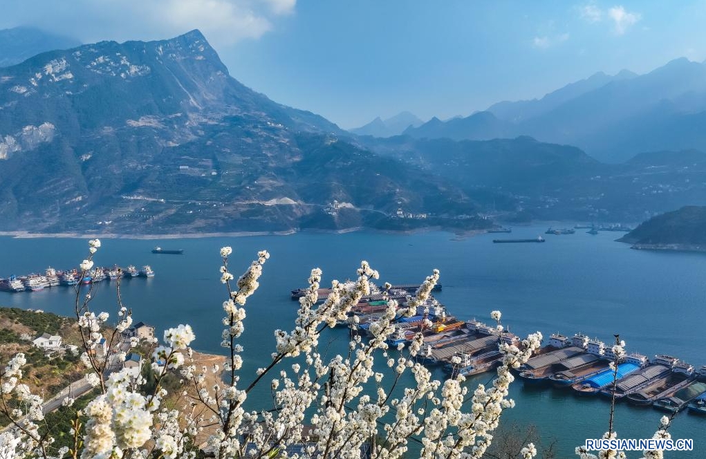 На фотографии запечатлены прекрасные весенние пейзажи в районе ГЭС "Санься" /"Три ущелья"/ в пров. Хубэй /Центральный Китай/. (Фото Синьхуа)