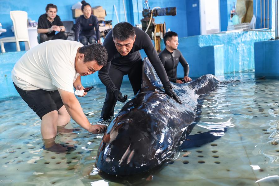 "Это первый случай успешного спасения выброшенной на берег короткоплавниковой гринды в Китае", - сказала Пу Бинмэй, ответственный секретарь Ассоциации охраны морской среды "Голубая лента" /BROCA/, которая является некоммерческой организацией. Этот случай может послужить важным ориентиром для спасательных работ на море, отметила она.