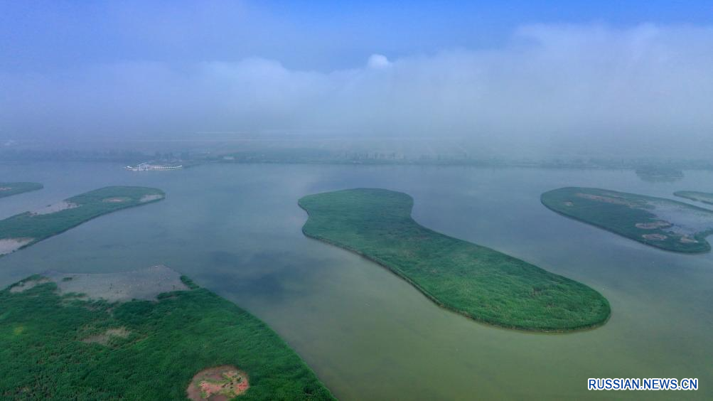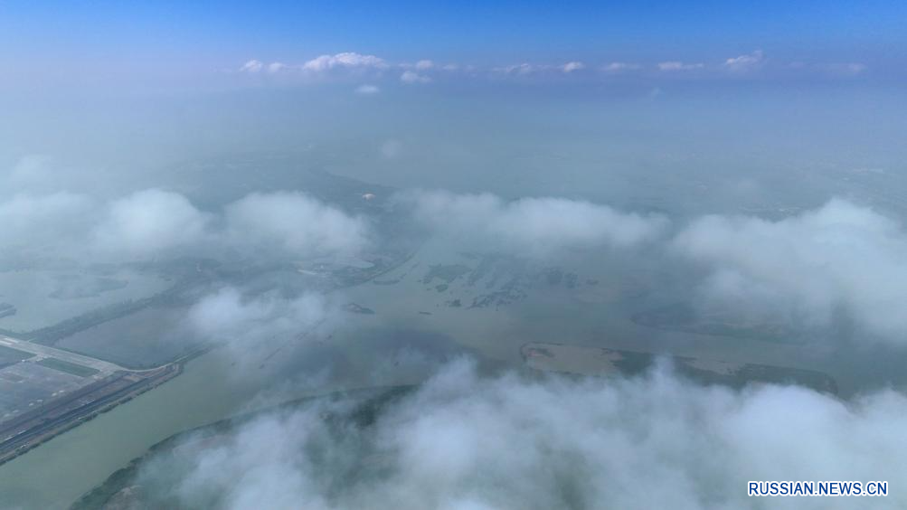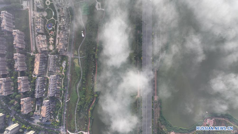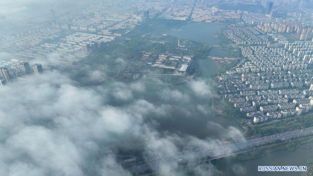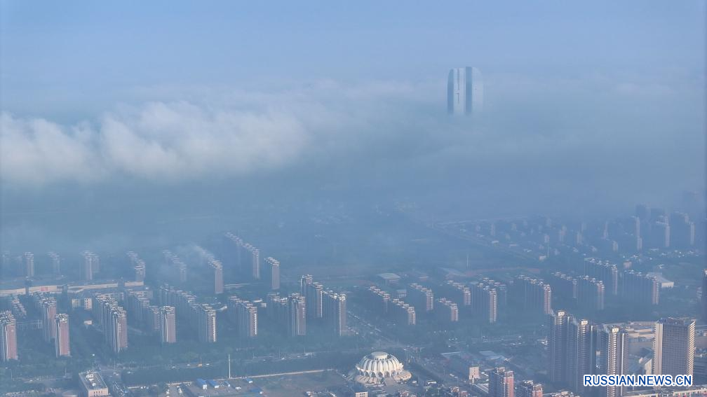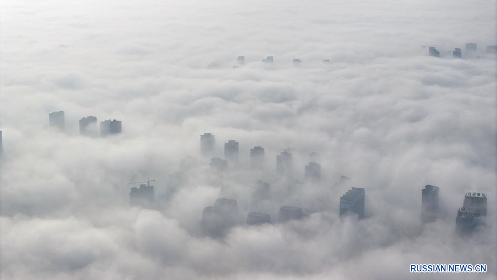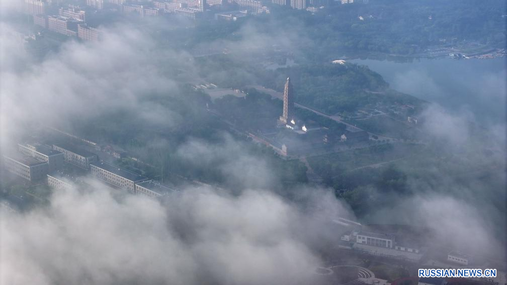 Туманный пейзаж в городе Иньчуань, административном центре Нинся-Хуэйского АР /Северо-Западный Китай/. (Фото Синьхуа)