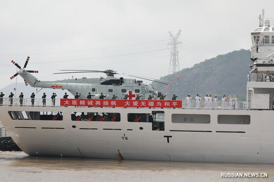 Госпитальное судно военно-морских сил Народно-освободительной армии Китая /НОАК/ "Ковчег мира" в воскресенье утром отплыло из одного из военных причалов города Чжоушань провинции Чжэцзян /Восточный Китай/ для выполнения задачи "Гармоничная миссия-2024".