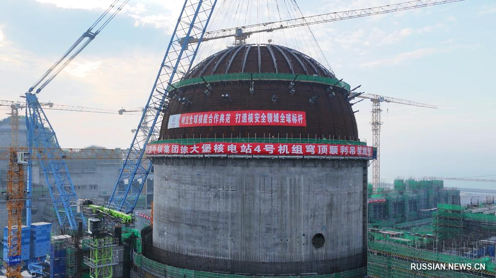 Во вторник успешно завершилась установка купола на здание 4-го энергоблока атомной электростанции "Сюйдапу", которая находится на территории города Хулудао провинции Ляонин /Северо-Восточный Китай/, что ознаменовало собой начало этапа монтажа оборудования в рамках китайско-российского проекта строительства третьего и четвертого энергоблоков АЭС "Сюйдапу".