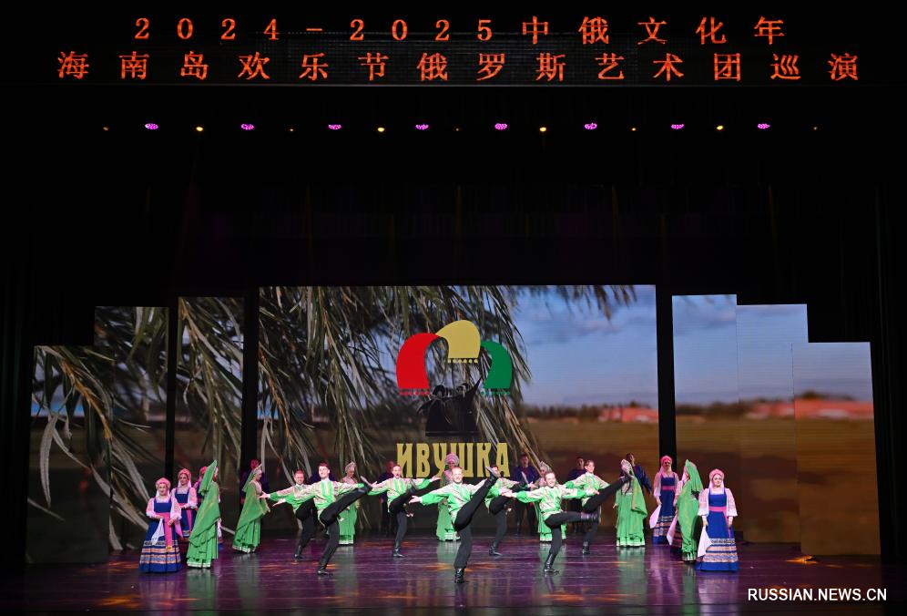 Государственный академический ансамбль песни и танца Тамбовской области "Ивушка" в субботу выступил перед зрителями в городе Хайкоу провинции Хайнань на юге Китая в связи с перекрестными Годами культуры Китая и России в 2024-2025 годах. /Фото: Синьхуа/