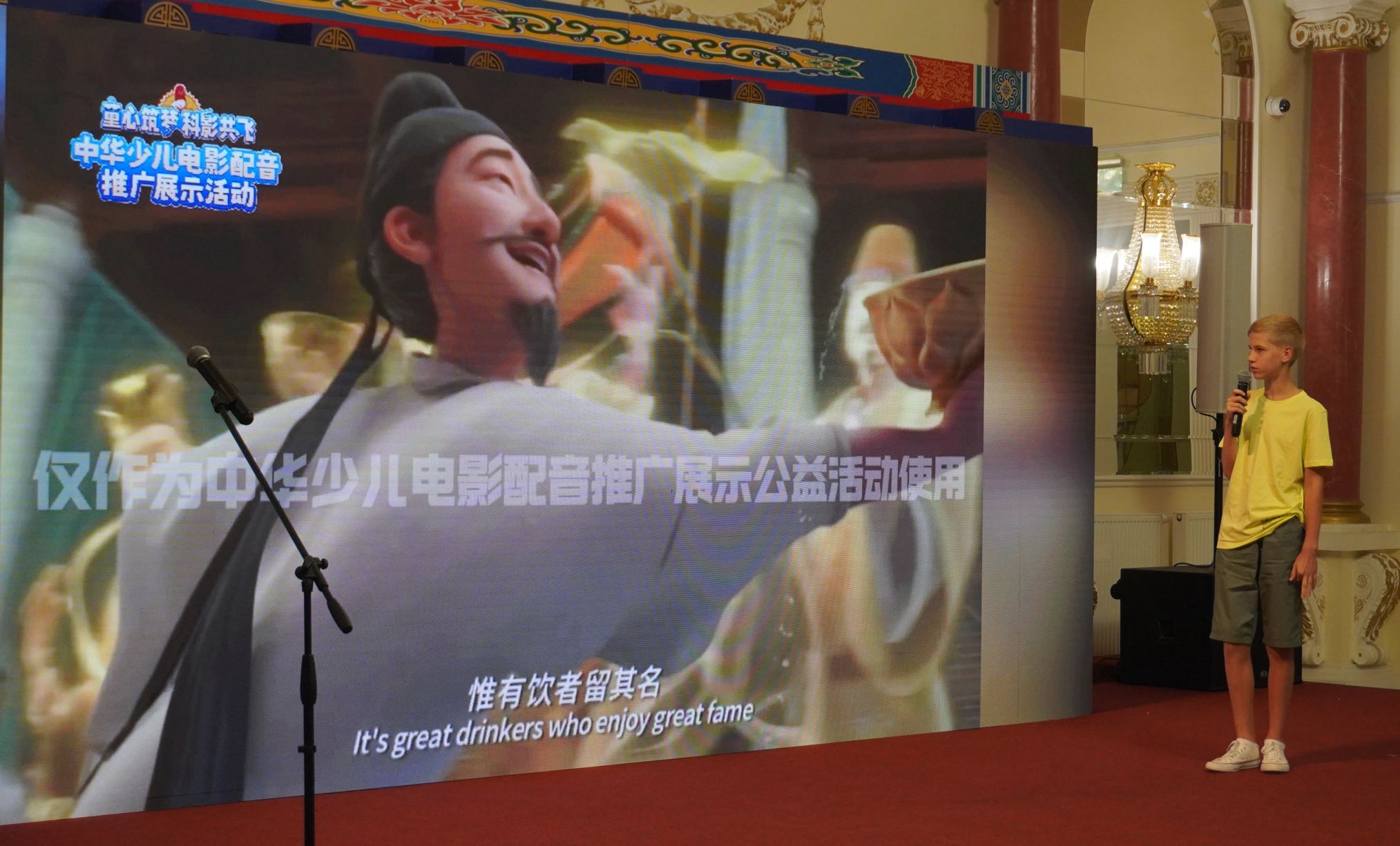 На мероприятии юные конкурсанты дублировали китайские мультфильмы на довольно беглом китайском. Свободное владение китайским языком, прекрасное исполнение, уверенность на сцене вызывали аплодисменты судей и зрителей. После подсчета голосов были выбраны «восходящие звезды», участникам вручили призы.