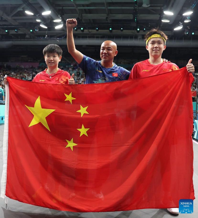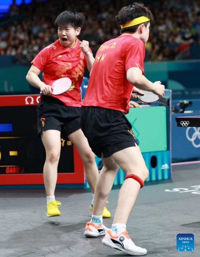 Китайская пара Ван Чуцинь/Сунь Инша во вторник завоевала золотую медаль в соревнованиях по настольному теннису в смешанном парном разряде на летних Олимпийских играх в Париже после победы в финале со счетом 4:2 над парой Ри Чон Сик/Ким Кум Ен из КНДР.