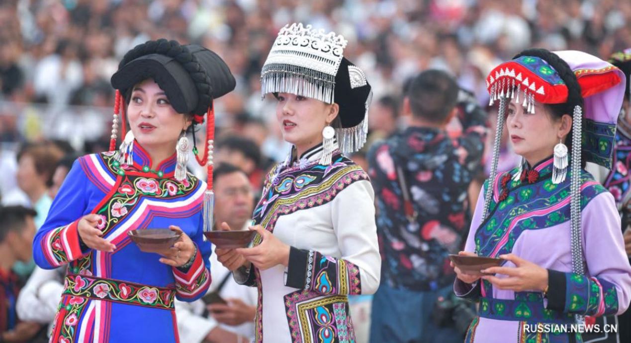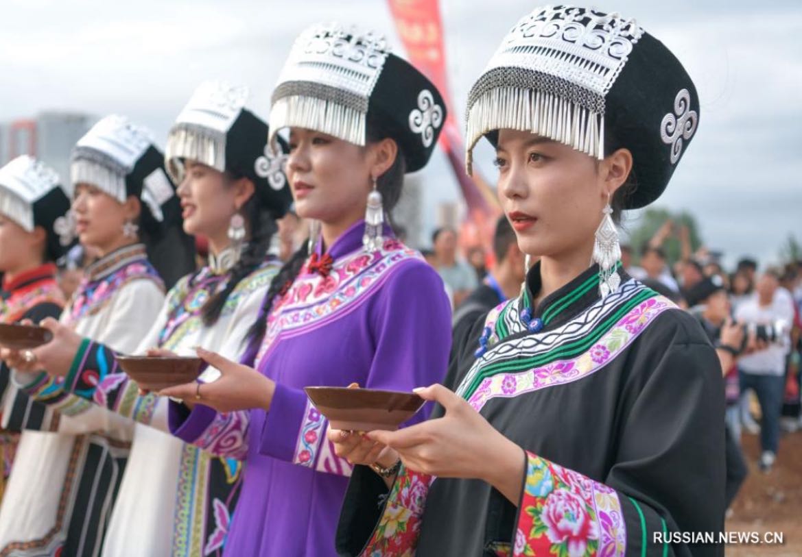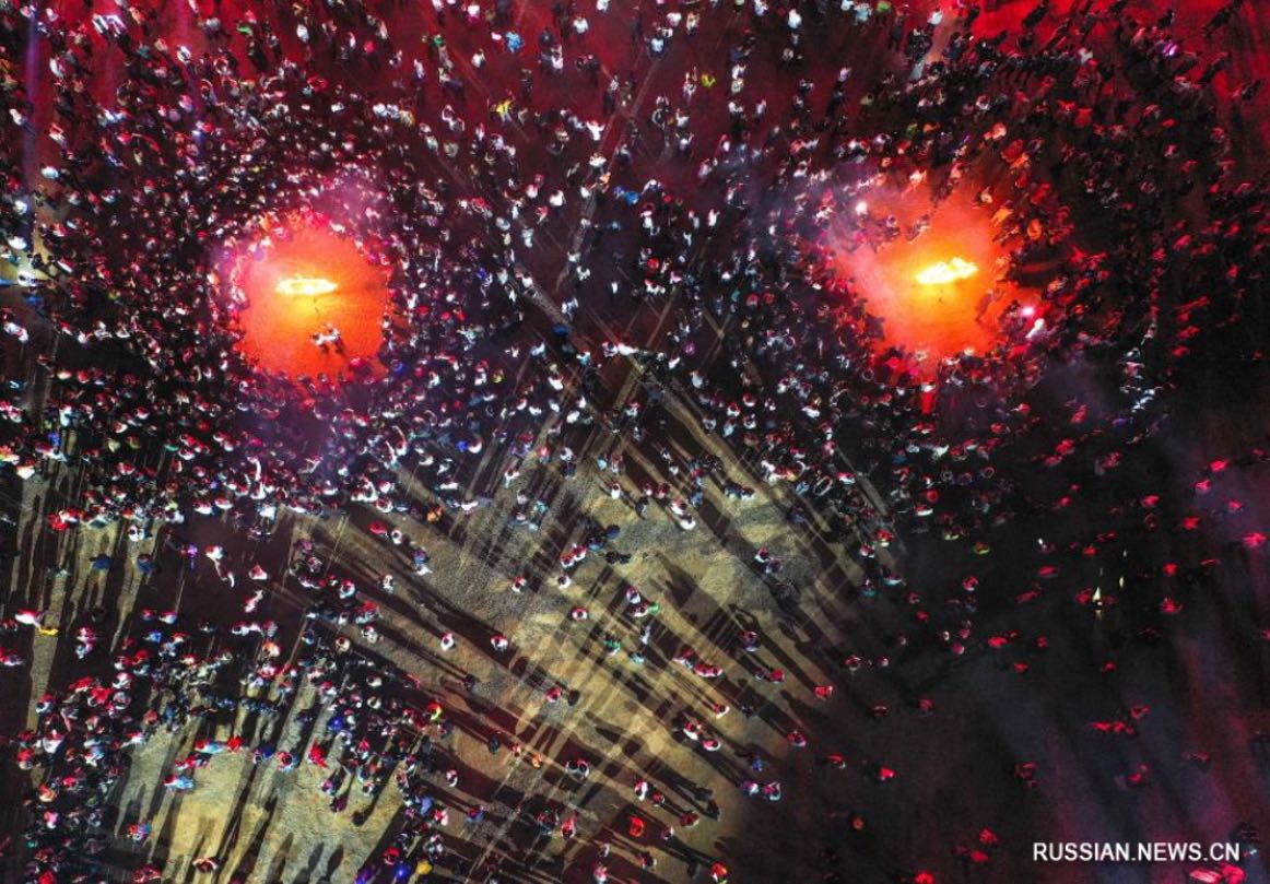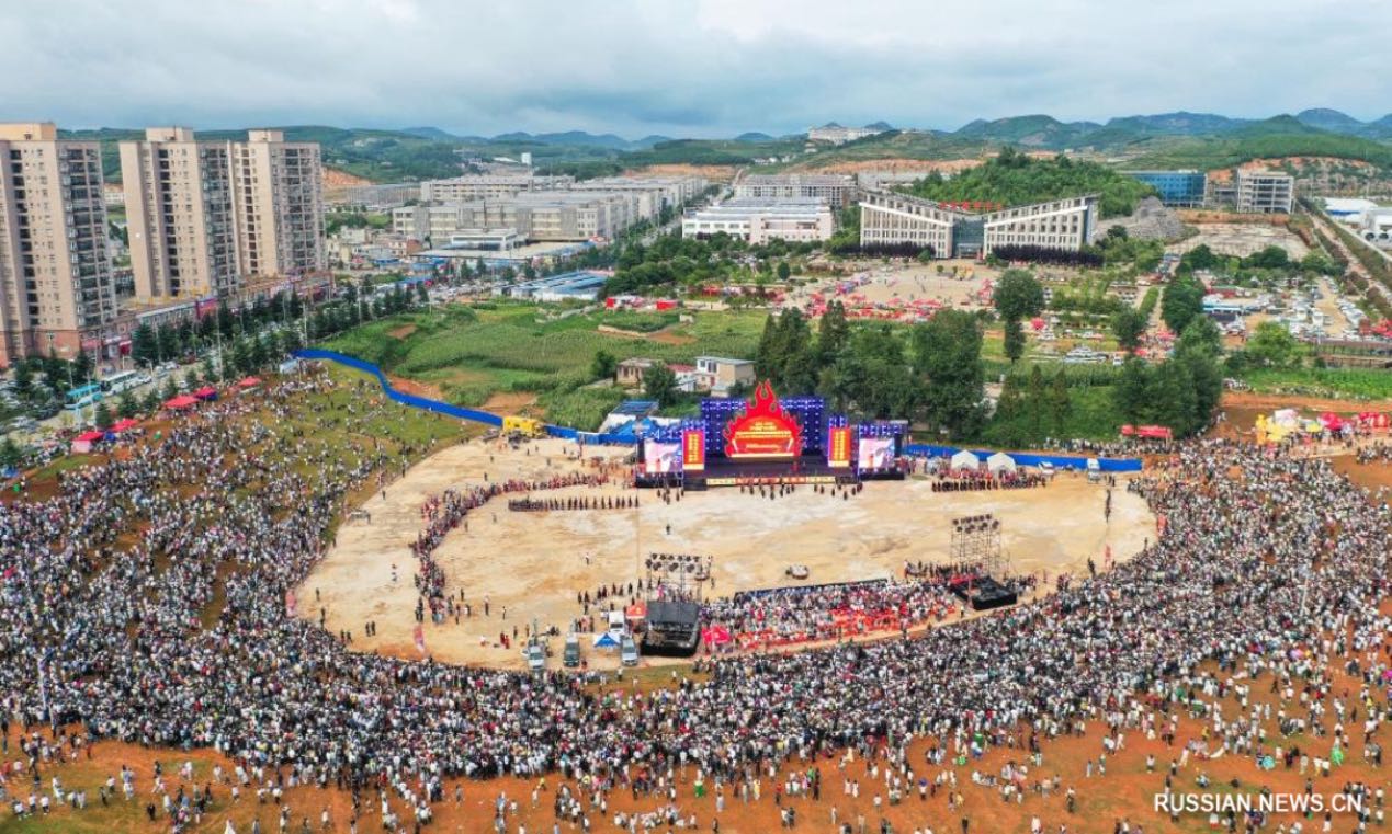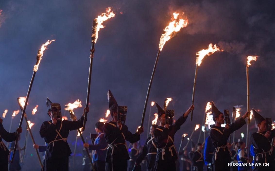 В понедельник в Вэйнин-И-Хуэй-Мяоском автономном уезде в пров. Гуйчжоу на юго-западе Китая местные жители отмечали Ийский Праздник факелов, во время которого были организованы разные мероприятия. /Фото: Синьхуа/