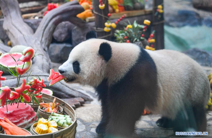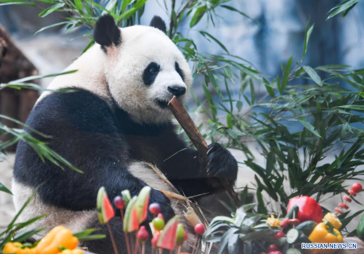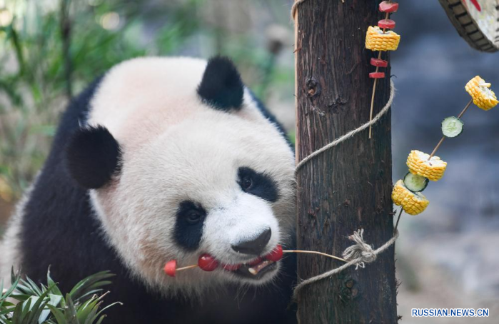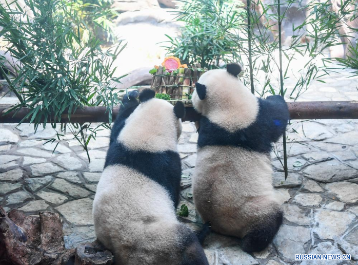Вчера в тематическом зоопарке Locajoy города Чунцин /Юго-Западный Китай/ прошло специальное мероприятие, посвященное дням рождения 3-летних панд-близнецов Цинхуа и Цинлу, а также 6-летней панды Цяоюэ. Фото Синьхуа