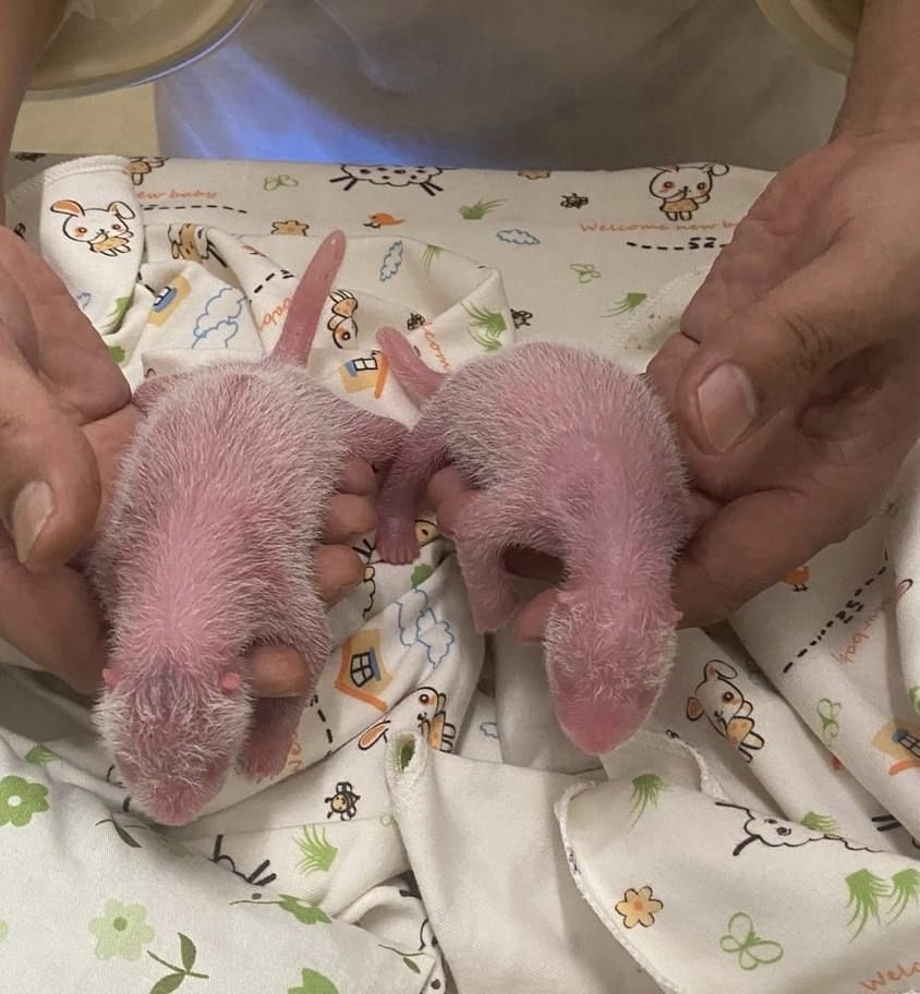 После пяти месяцев беременности самка большой панды Ин Ин, наконец, родила близнецов в четверг в 02:05 и 03:27 соответственно.