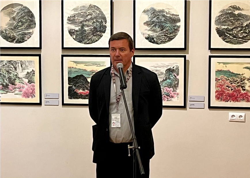 На открытие выступили Заместитель директора госдуарственного музея Востока Илья Зайцев и первый заместитель председателя Общества российско-китайской дружбы, Кавалер ордена Дружбы КНР Галина Куликова. Они отметили высокий профессионализм художницы и глубокий символизм ее картин, а также подчеркнули что проведение этой выставки будет способствовать развитию культурного обмена и связей между народами двух стран. Сама художница, также выступила с речью, в которой поблагодарила выступающих и присутствующих за поддержку.