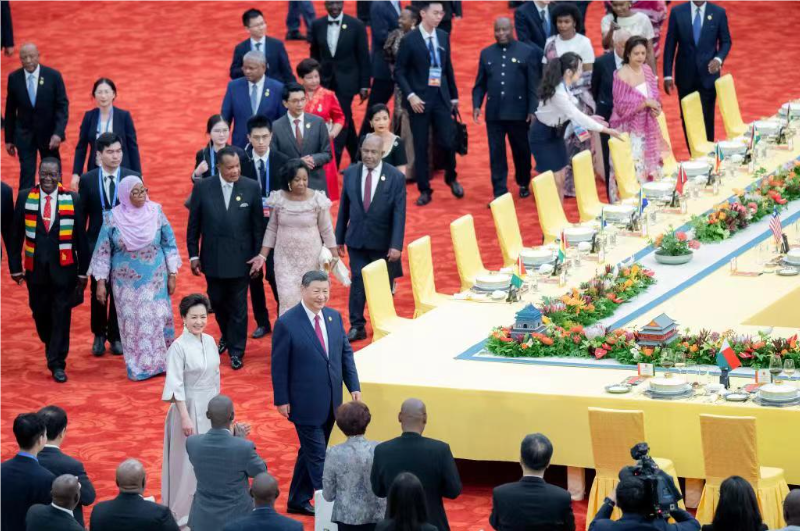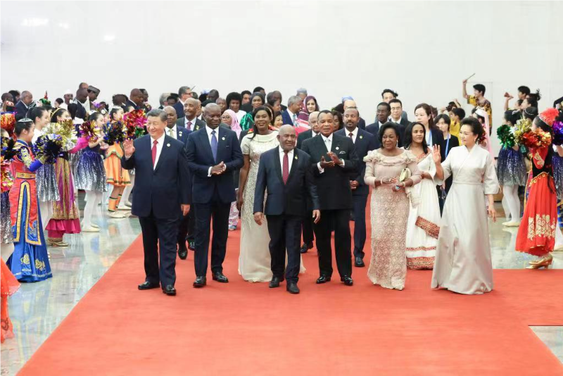 Си Цзиньпин и его супруга Пэн Лиюань устроили в Доме народных собраний в Пекине приветственный банкет для гостей, съехавшихся в столицу КНР из разных стран Африки для участия в саммите ФКАС -- крупнейшем дипломатическом мероприятии, который проводит Китай за последние годы.