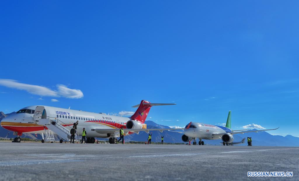 Реактивный пассажирский самолет C919, разработанный Китайской корпорацией коммерческих самолетов /COMAC/, в четверг совершил перелет из провинции Сычуань /Юго-Западный Китай/ в Сицзанский автономный район и приземлился в международном аэропорту Гонггар в городе Лхаса, административном центре района.