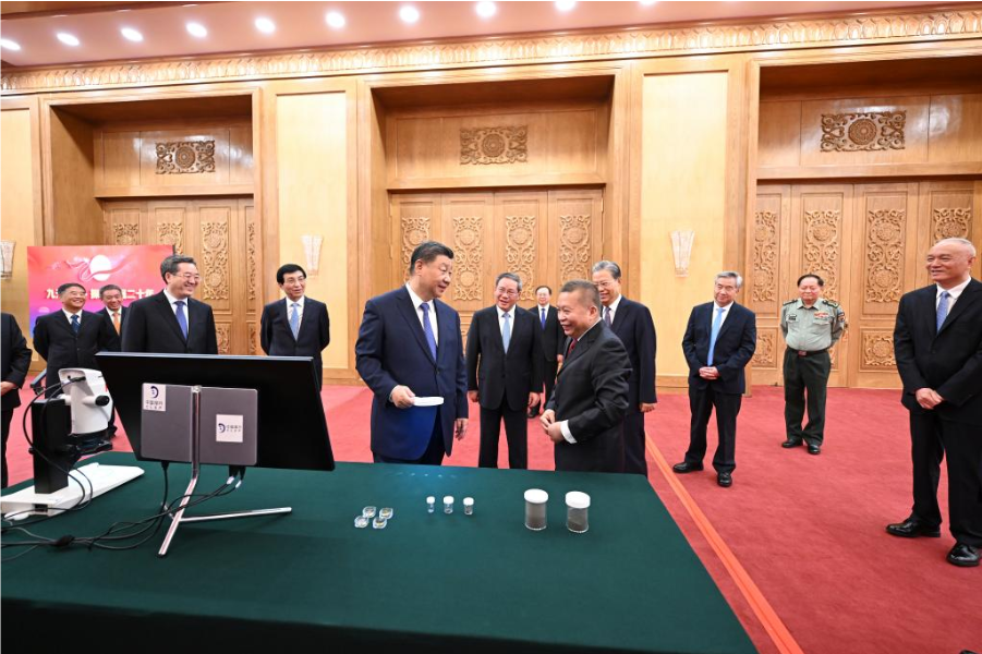 Си Цзиньпин, также являющийся генеральным секретарем ЦК КПК и председателем Центрального военного совета, встретился в Доме народных собраний в Пекине с представителями ученых и инженеров, участвовавших в исследованиях, разработках и испытаниях в рамках лунной миссии "Чанъэ-6".