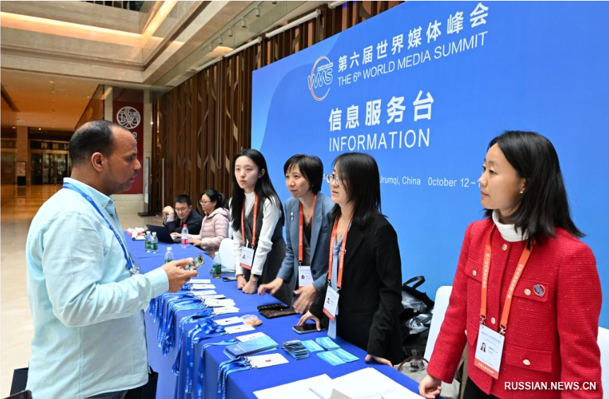 С 12 по 17 октября в китайской столице Пекин и городе Урумчи Синьцзян-Уйгурского автономного района /CУАР, Северо-Западный Китай/ проходит 6-й Всемирный медиа-саммит. В нем принимают участие более 500 представителей из 208 ведущих СМИ, правительственных ведомств и других учреждений 106 стран и регионов мира, а также учреждений при ООН и других международных организаций. Организаторами мероприятия выступают ИА Синьхуа и народное правительство CУАР. /Фото: Синьхуа/