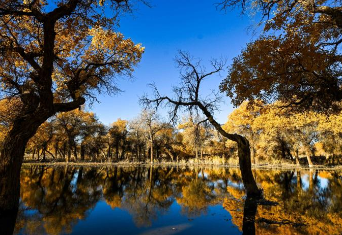 На фото запечатлены пейзажи евфратских тополей в хошуне Эцзина /Эрджин/ аймака Алашань автономного района Внутренняя Монголия /Северный Китай/.