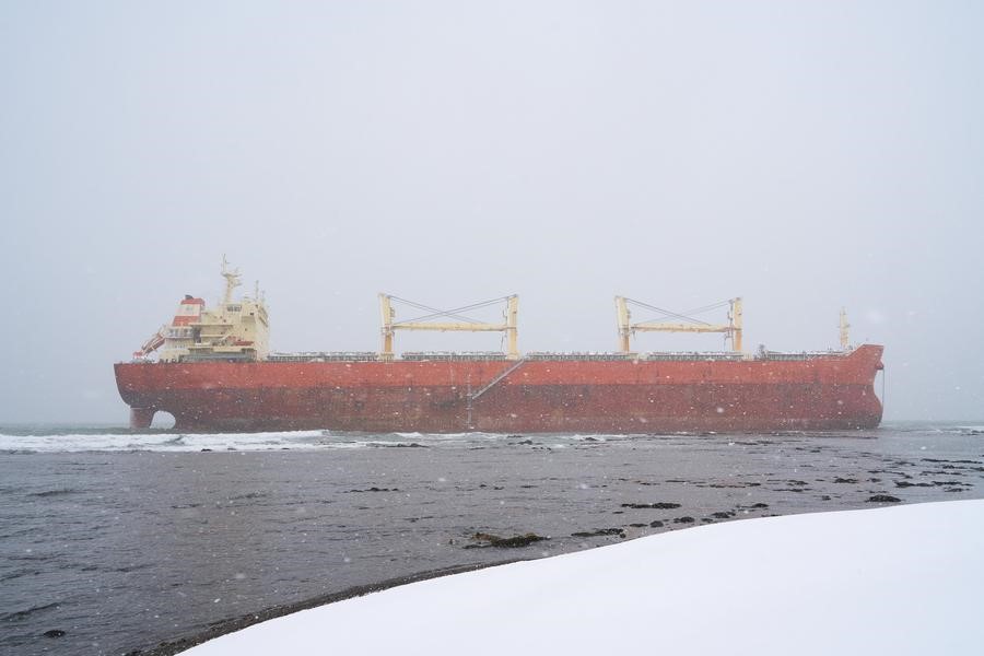 Корреспонденты Синьхуа в воскресенье прибыли в порт Невельск, где находится судно "Аньян-2", и увидели, что корабль сел на мель в 200 метрах от берега. На море был сильный ветер и высокие волны. Вскоре пошел сильный снег, и температура упала примерно до минус 10 градусов по Цельсию.